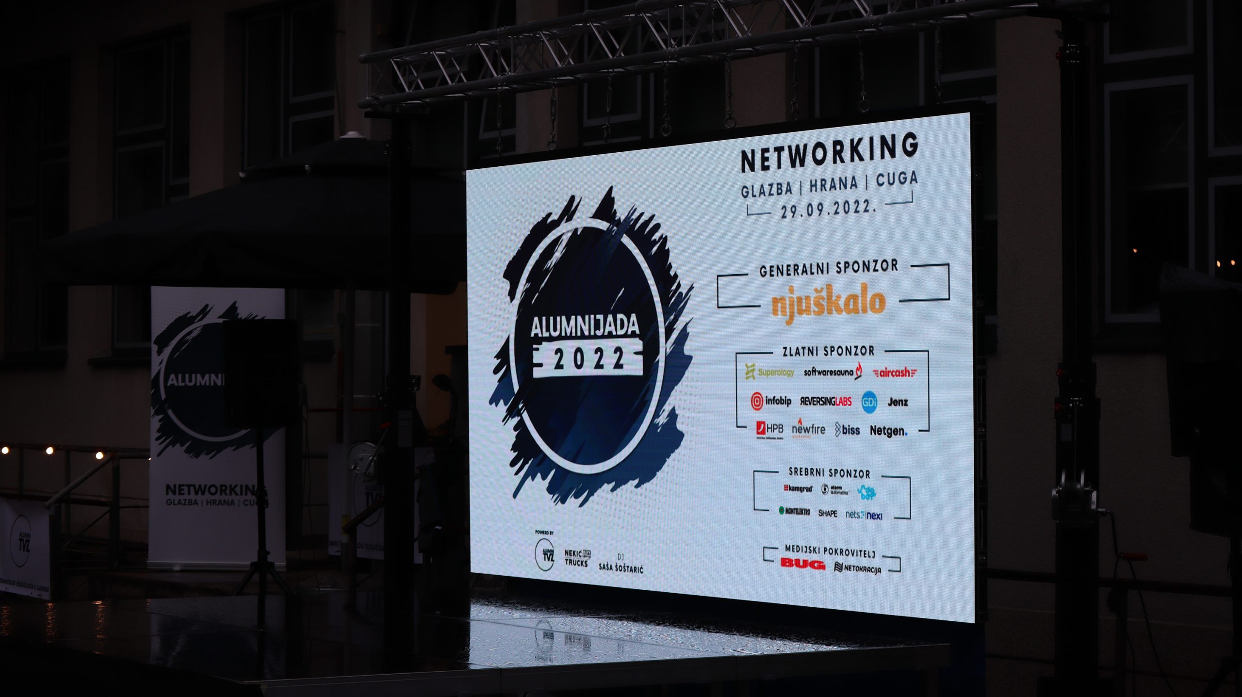 Glavne njuške ovog događaja su bile naravno iz Njuškala koji su uz tvrtke Biss, Netgen, ReversingLabs, Infobip, GDi, Superology, Software Sauna, Jenz, HPB, Newfire Global Partners , Aircash na pozornici predstavili svoje tehnologije, tvrtke ali i otvorene pozicije. Naravno ovogodišnju Alumnijadu su poduprijeli i obilježili: Kamgrad, Undabot, Nets, SHAPE 404, Alarm automatika i Montelektro.